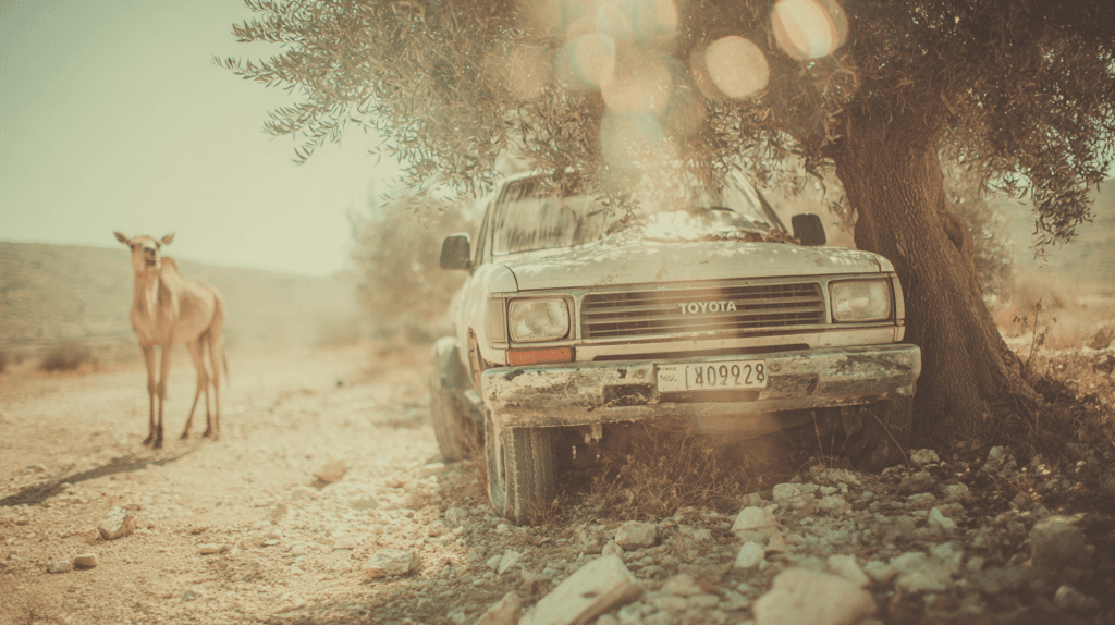 De Engel en de Dromedaris – Omringt door een olijfboom, een gehavende pick-up truck en een dromedaris veranderde het leven van de…